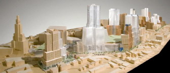 - Buildings developed at Site 5 (the block bounded by Atlantic Avenue, Flatbush Avenue, Pacific Street and Fourth Avenue) should be set back from Pacific Street, with a building or building section contextual to the row houses on the south side of the street buffering towers from the residential context.